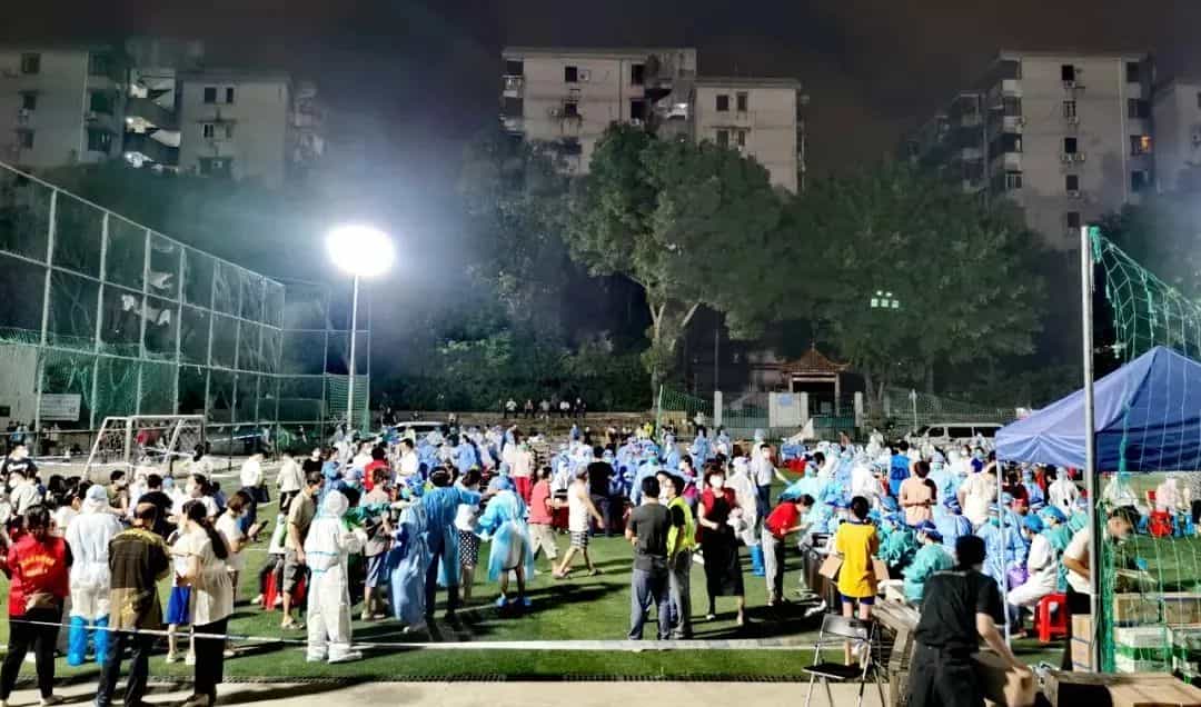 26日凌晨3時,一場突如其來的雷暴雨讓露天的核酸檢測場地陷入短暫的混亂,工作人員仍然堅守陣地至天明。27日,廣州市最高溫度達到34℃,烈日下,中國船舶人汗流浹背的身軀不曾疲憊。