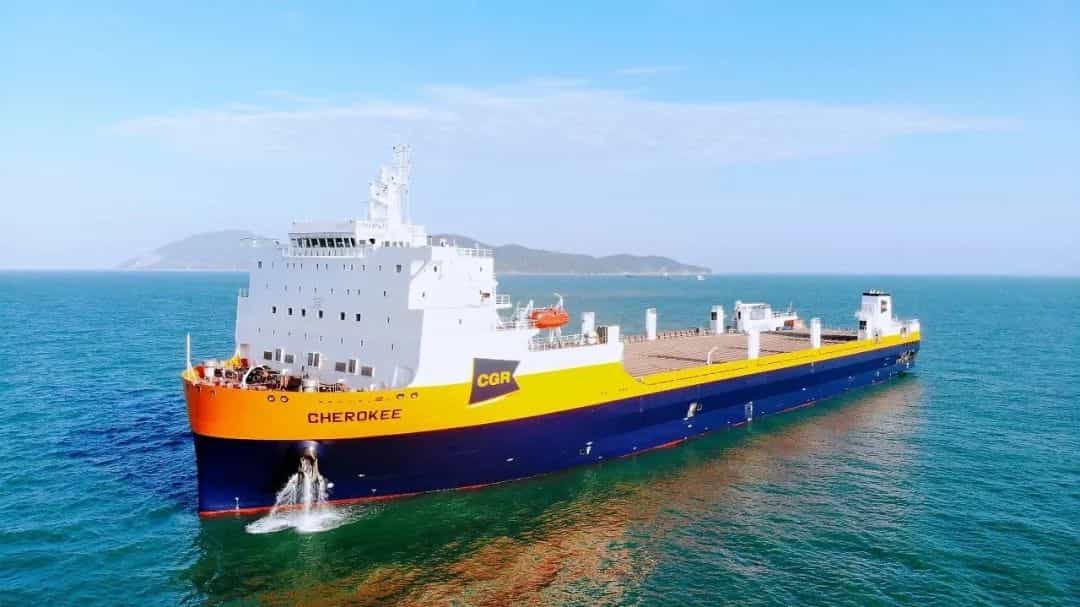 今日(6月8日),由我國(guó)自主設(shè)計(jì)建造的全球最大火車專用運(yùn)輸船“切諾基”號(hào)(CHEROKEE)在廣州交付。