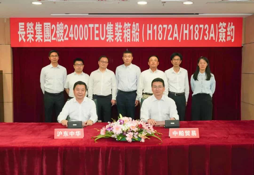 6月18日,中國船舶集團有限公司旗下中國船舶工業貿易有限公司聯合滬東中華造船(集團)有限公司與長榮集團以云簽約的形式,簽訂了2艘24000TEU超大型集裝箱船建造合同,中國船舶集團設計建造的超大型集裝箱船再次得到國際班輪公司的青睞和認可。