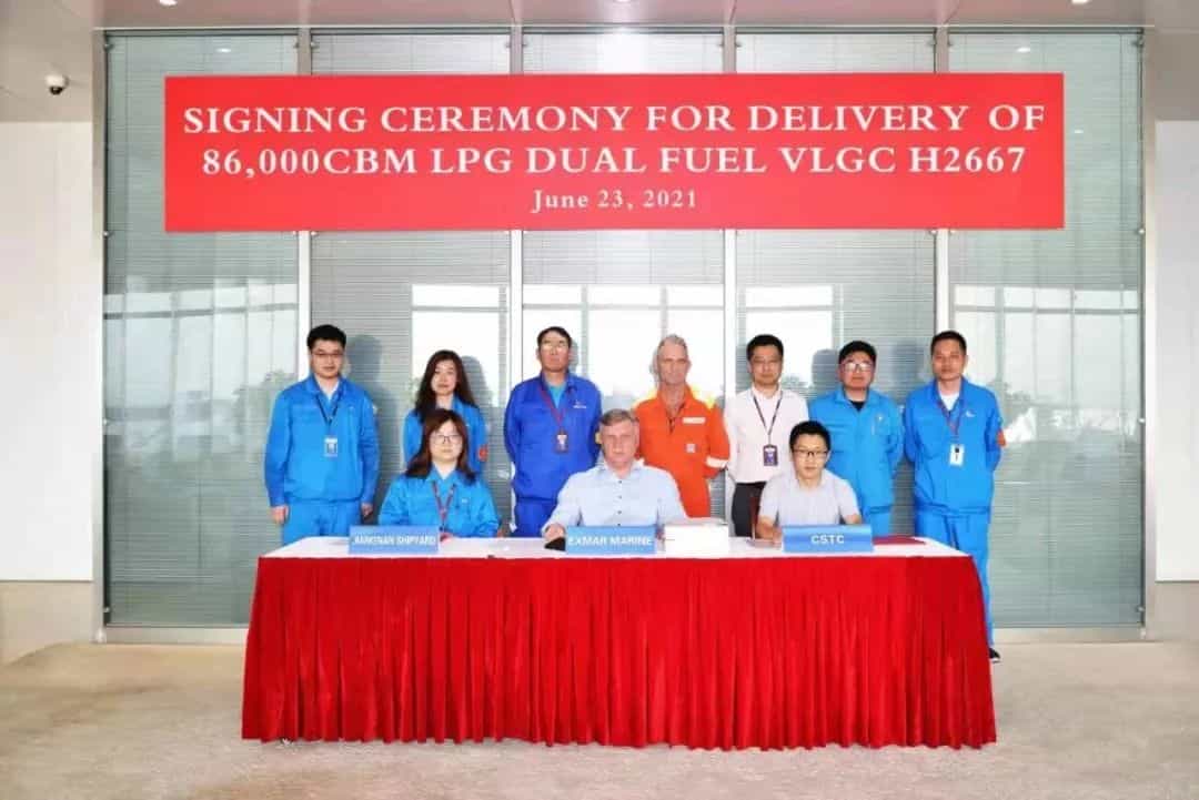 去年4月,中國船舶集團旗下江南造船和比利時EXMAR公司正式簽署2艘86000立方米VLGC建造合同,按計劃新船將分別在2021年第二季度和第三季度交付。