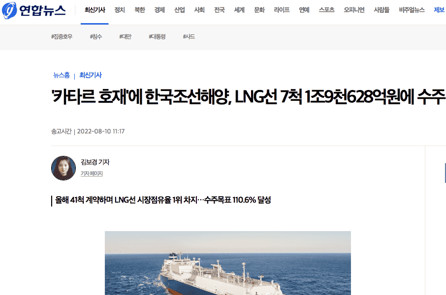 韓聯(lián)社報(bào)道稱,上述7艘LNG運(yùn)輸船應(yīng)該是卡塔爾能源LNG項(xiàng)目的后續(xù)生效訂單。如果上述判斷屬實(shí),截至目前,韓國(guó)船企的卡塔爾能源相關(guān)項(xiàng)目LNG運(yùn)輸船訂單已生效33艘,其中韓國(guó)造船海洋已生效17艘。