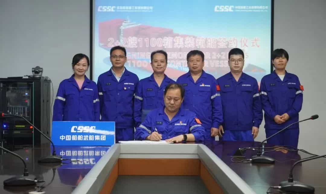 日前,中國船舶工業貿易有限公司聯合武昌船舶重工集團有限公司,與希臘船東以“云簽約”形式,簽訂了2+2艘1100TEU集裝箱船建造合同。