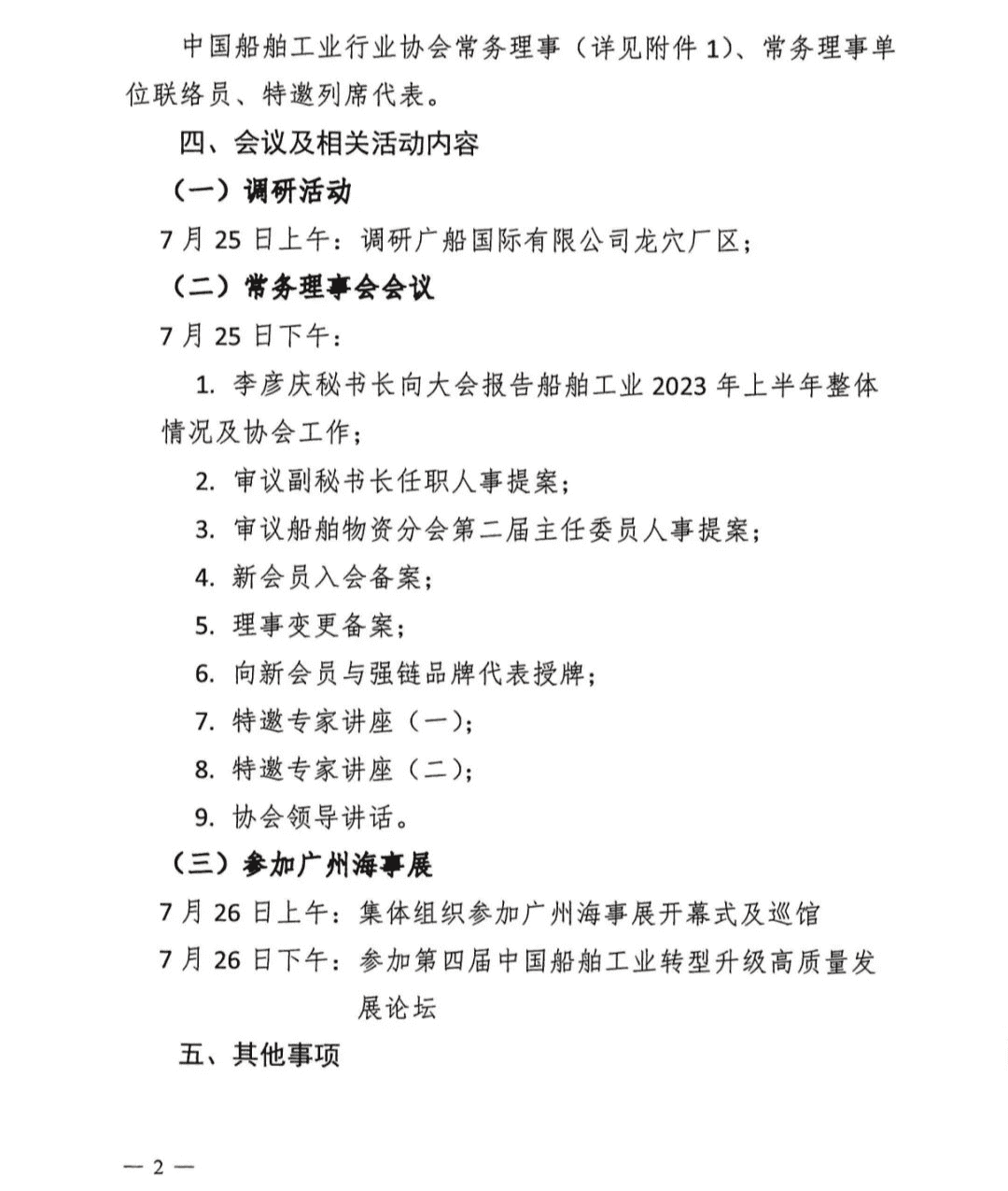 關于召開中國船舶工業行業協會第五屆理事會第十五次常務理事會議的通知