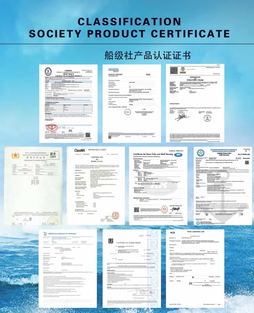 The products we manufacture have been awarded product certificates by CCS, ABS, BV, DNV-GL, KR, LR, NK, RINA and other classification societies.
