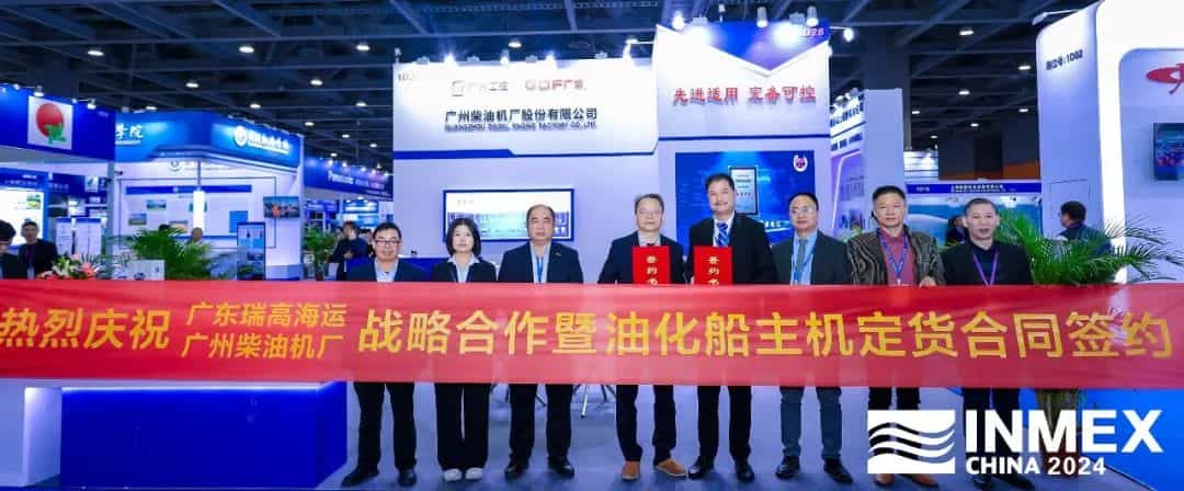 11月28日,2024年第十一屆廣州國際海事展期間,廣州柴油機廠股份有限公司與廣東瑞高海運物流有限公司舉行戰(zhàn)略合作暨25K油化船主機合同簽約儀式。